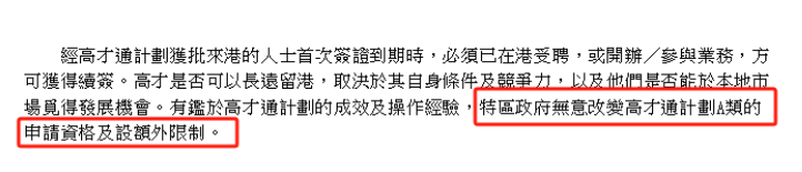 相信很多内地申请人也会有此焦虑,A类申请是否门槛会提高,对续签的要求是否有特别的要求。特区政府于12月4日的最新答复如下: