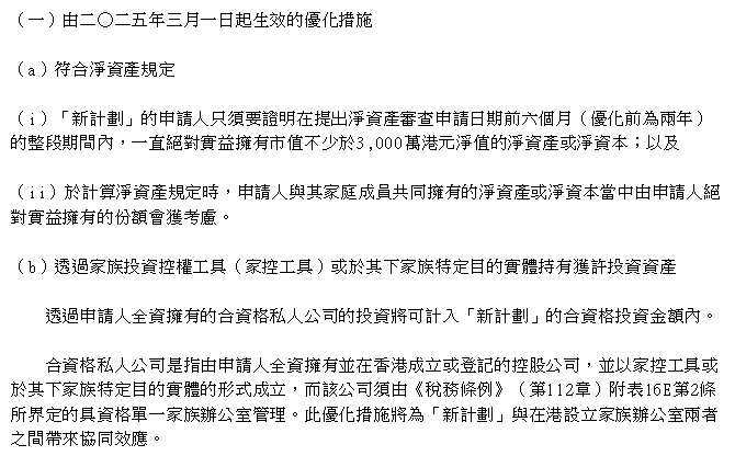 ● 须为家控工具或于家控工具下的家族特定目的实体,而该家控工具须在香港至少有梁明全职员工进行家控工具的活动及每年须在香港承付至少200万港元的营运开支